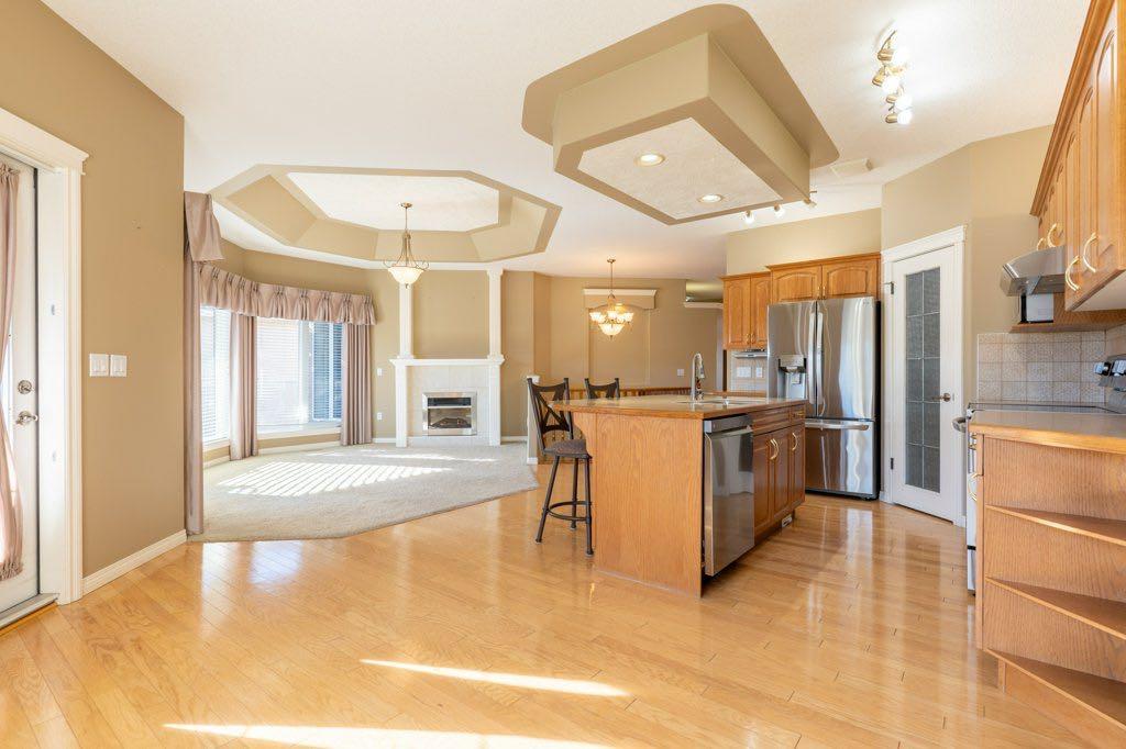 Welcome to this meticulously maintained walk-out bungalow in the prestigious River Ridge Garden Homes, a sought-after 55+ gated community offering luxury, comfort, and convenience! Step inside to gleaming hardwood floors, a bright den/library, and an open-concept kitchen and living area featuring a cozy gas fireplace and access to your private deck overlooking beautifully landscaped grounds, complete with waterways and fountains. The fully developed walk-out lower level boasts a spacious family room with custom wet bar, a large bedroom, full bathroom, and direct access to the immaculately maintained outdoor space—no yard work required! Enjoy year-round comfort with in-floor heating in the basement and a tiled roof, plus a double attached heated garage with epoxy floors. Residents enjoy access to the 29 River Ridge Dr amenities, including a pool, hot tub spa, social rooms, and more. Pets allowed (with board approval). Experience the perfect blend of luxury, privacy, and carefree living in this exceptional home—just move in and start relaxing!